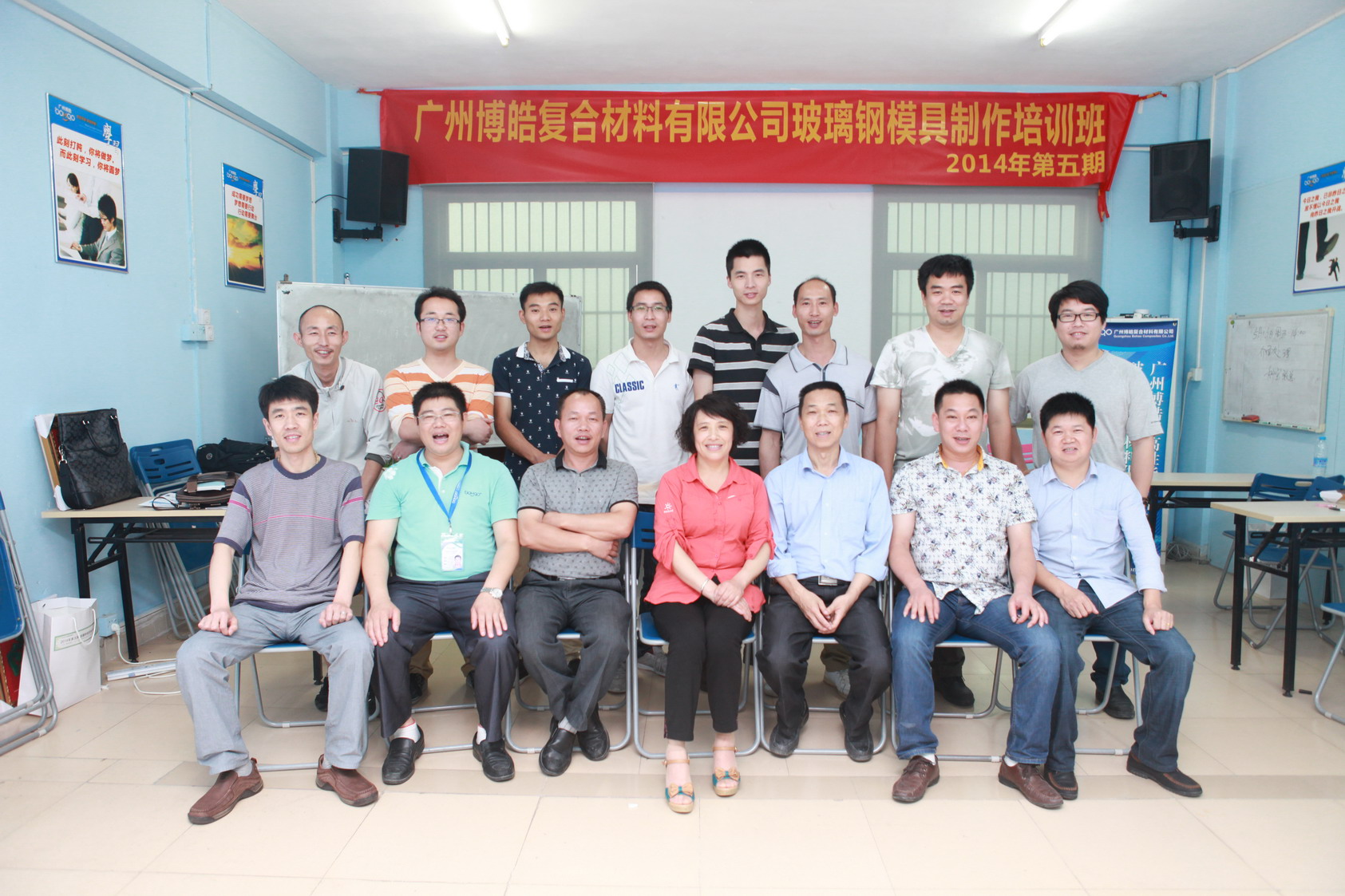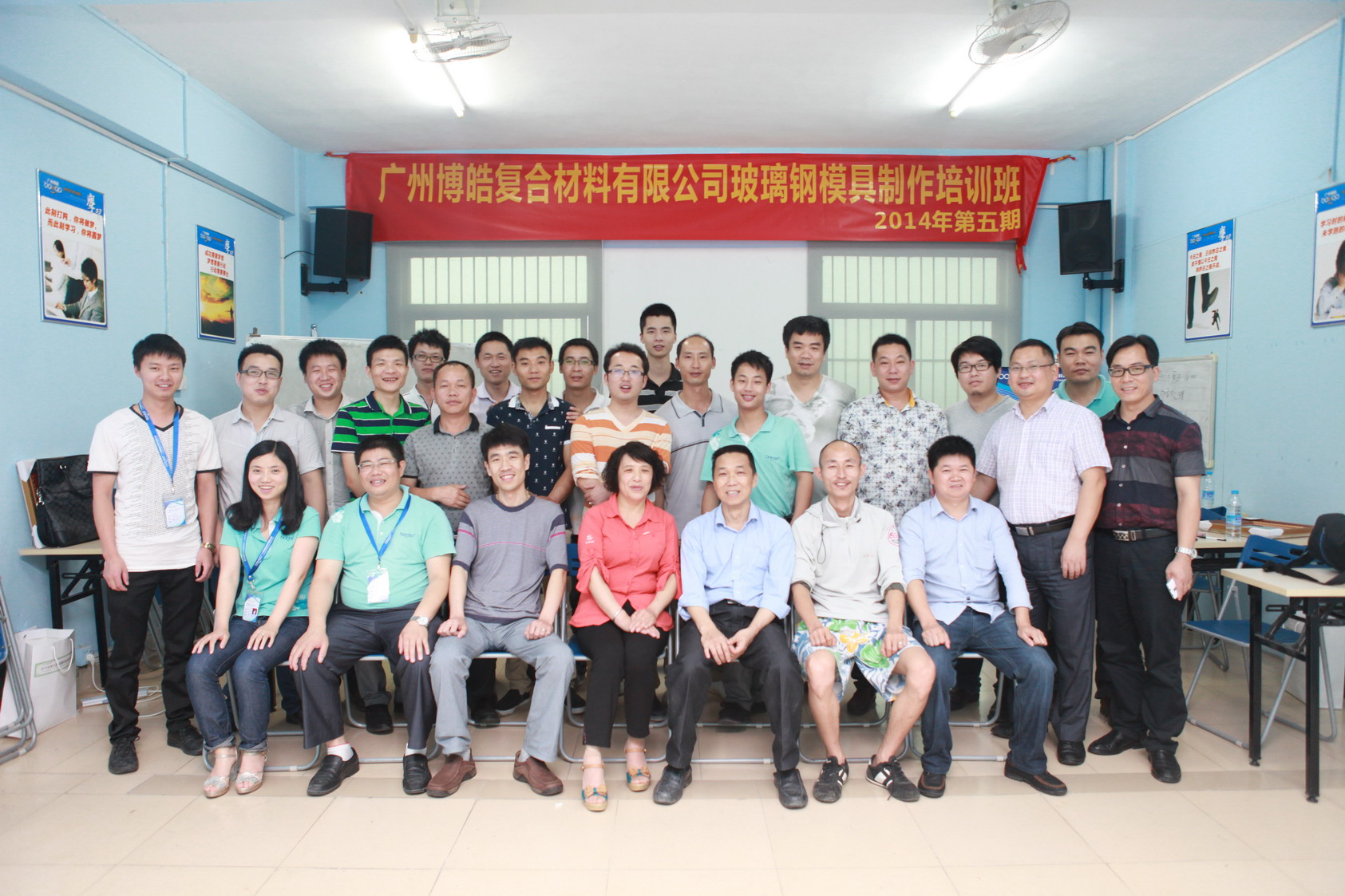 2014年5月12日~16日,為期五天的廣州博皓玻璃鋼模具制作培訓班第五期正式開班。本次培訓班由原中國玻璃鋼協會模具制作資深講師譚永枝老師主講,廣州博皓復合材料有限公司主辦。