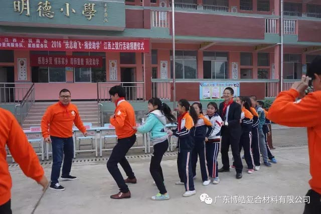 2016年12月8日-9日,有著廣東江西上猶商會(huì)會(huì)長、廣東博皓復(fù)合材料有限公司董事長雙重身份的賴厚平先生帶領(lǐng)商會(huì)成員等一行人來到江西上猶縣開展為期二天的“扶志助飛、捐資助學(xué)”捐資助學(xué)活動(dòng),為偏遠(yuǎn)貧困山區(qū)小學(xué)的師生們送去助學(xué)金和課桌、學(xué)習(xí)用品、電腦設(shè)備等一大批教育教學(xué)物資,用行動(dòng)助力地方教育工作。